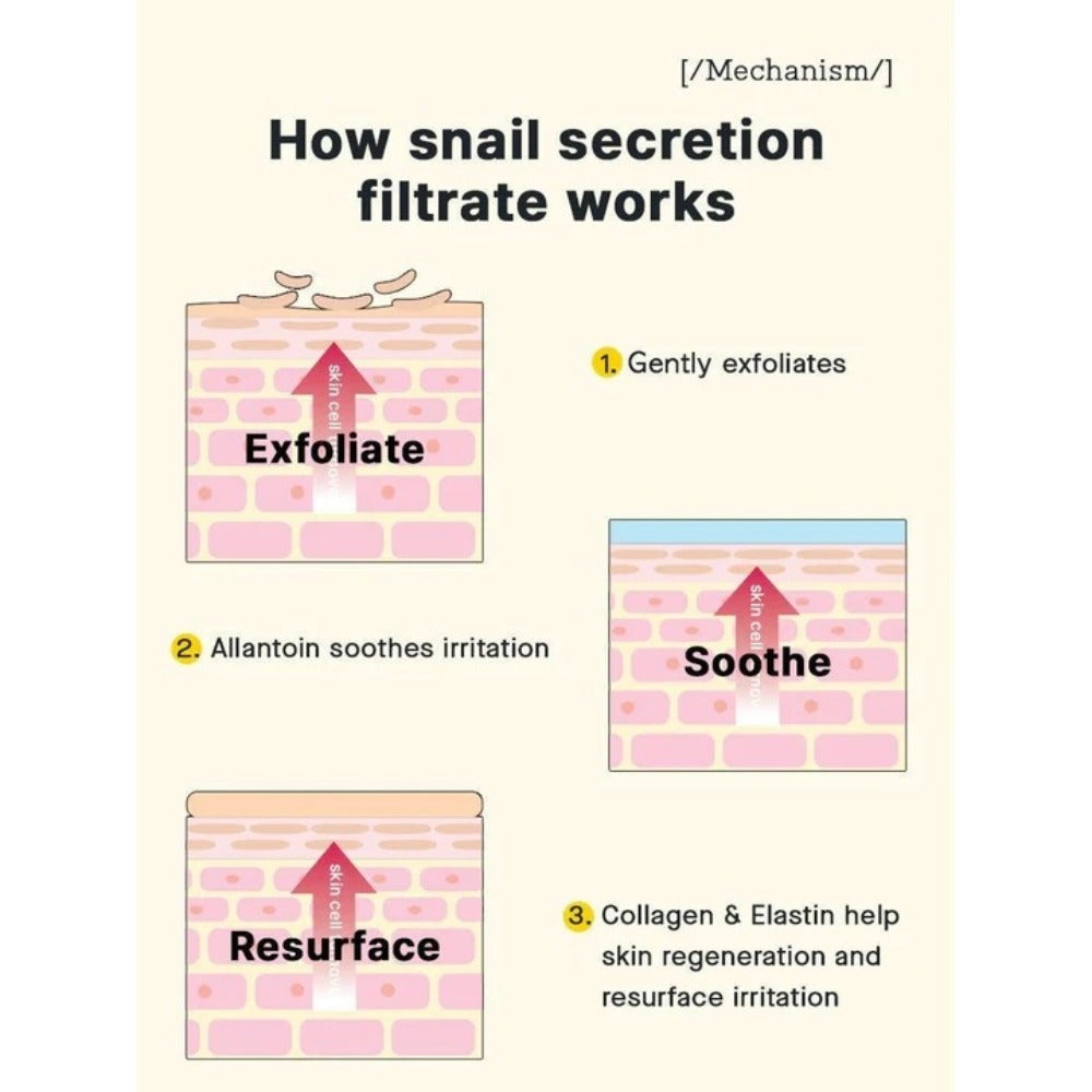 Enrichi à 96 % avec un filtrat de sécrétion d'escargot, un ingrédient stimulant pour la peau