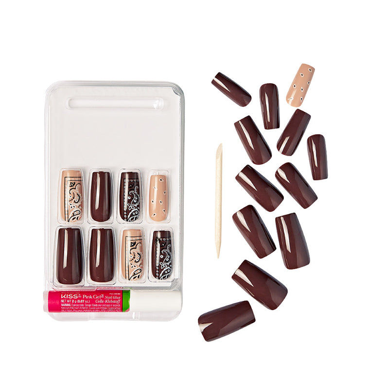 - Le kit contient : 24 ongles au design tendance, de la colle gel rose 2 ml et un bâton de manucure