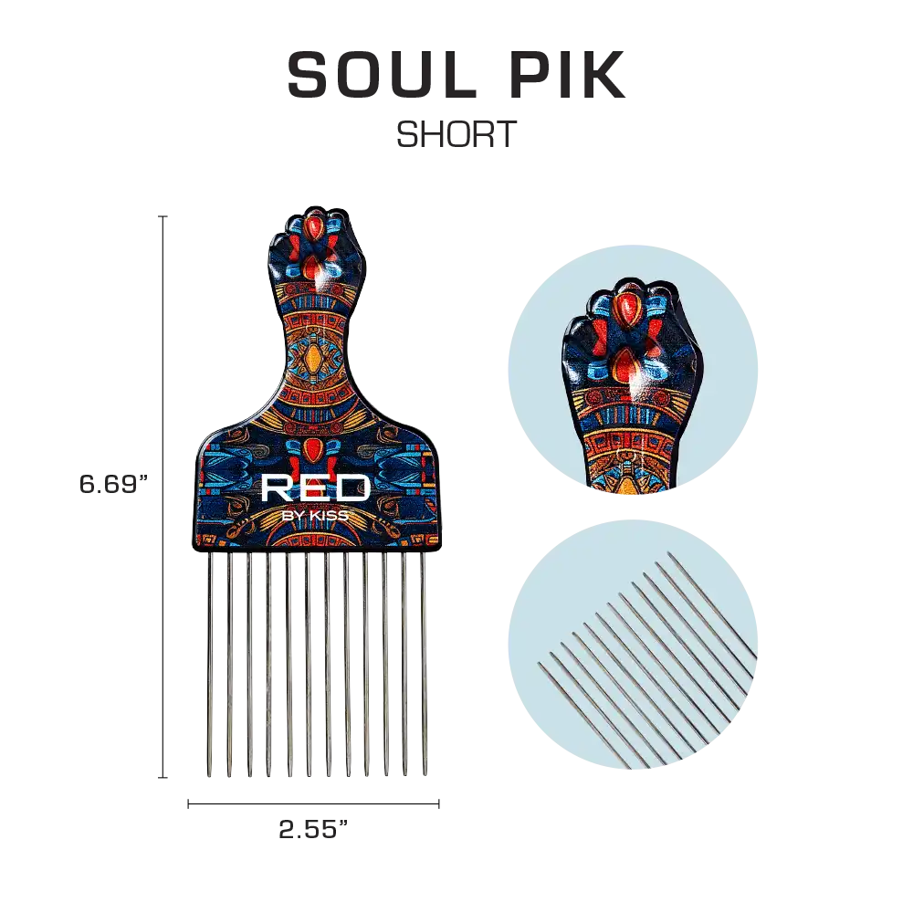 Le pic à cheveux Red by Kiss Soul Pik pour cheveux bouclés et afros permet de démêler et de soulever les cheveux pour plus de volume et de forme . Il est doté de dents métalliques résistantes et de deux longueurs différentes.