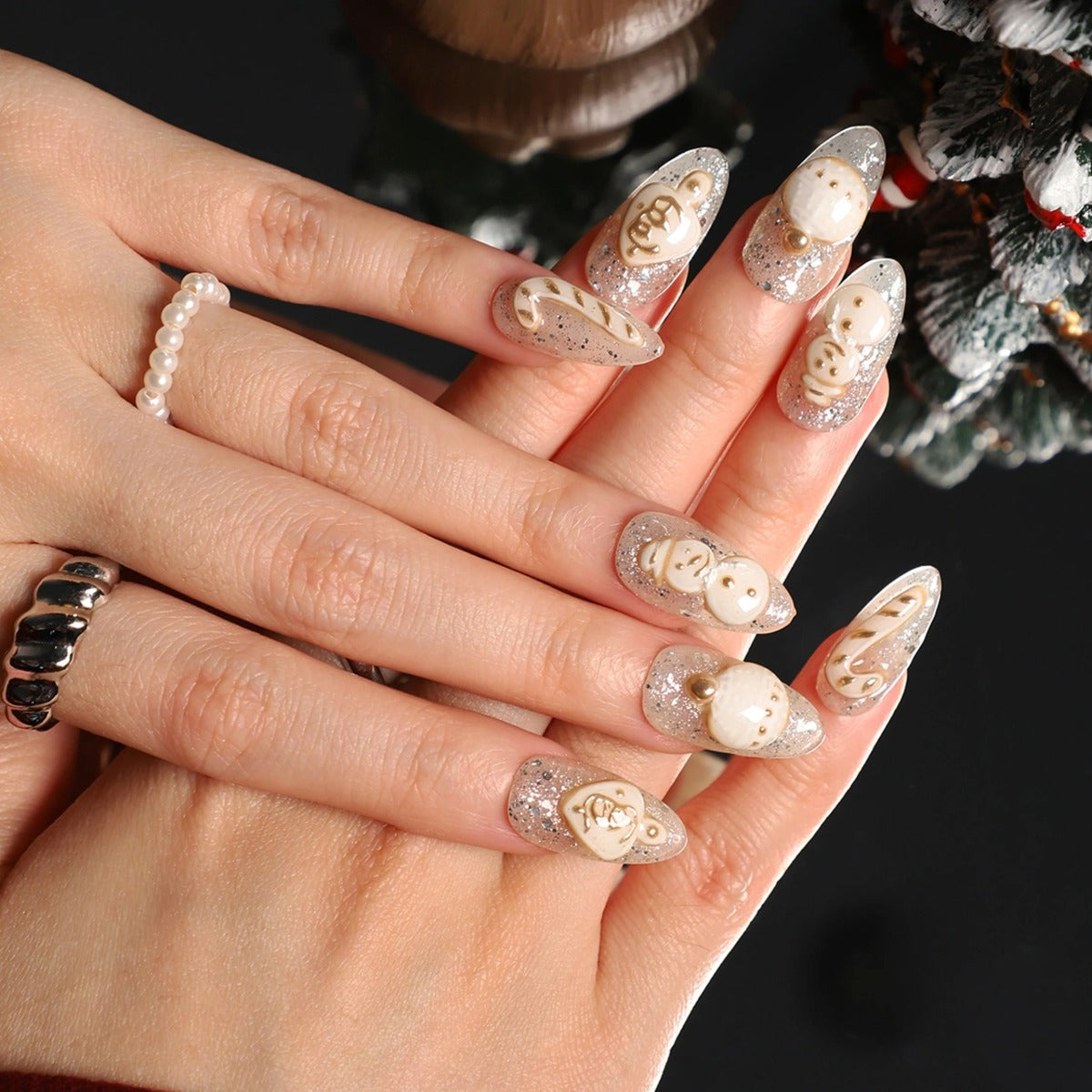 Red, white, and icy blue come together in these Christmas nails — a knit-textured design that feels like wearing winter joy.