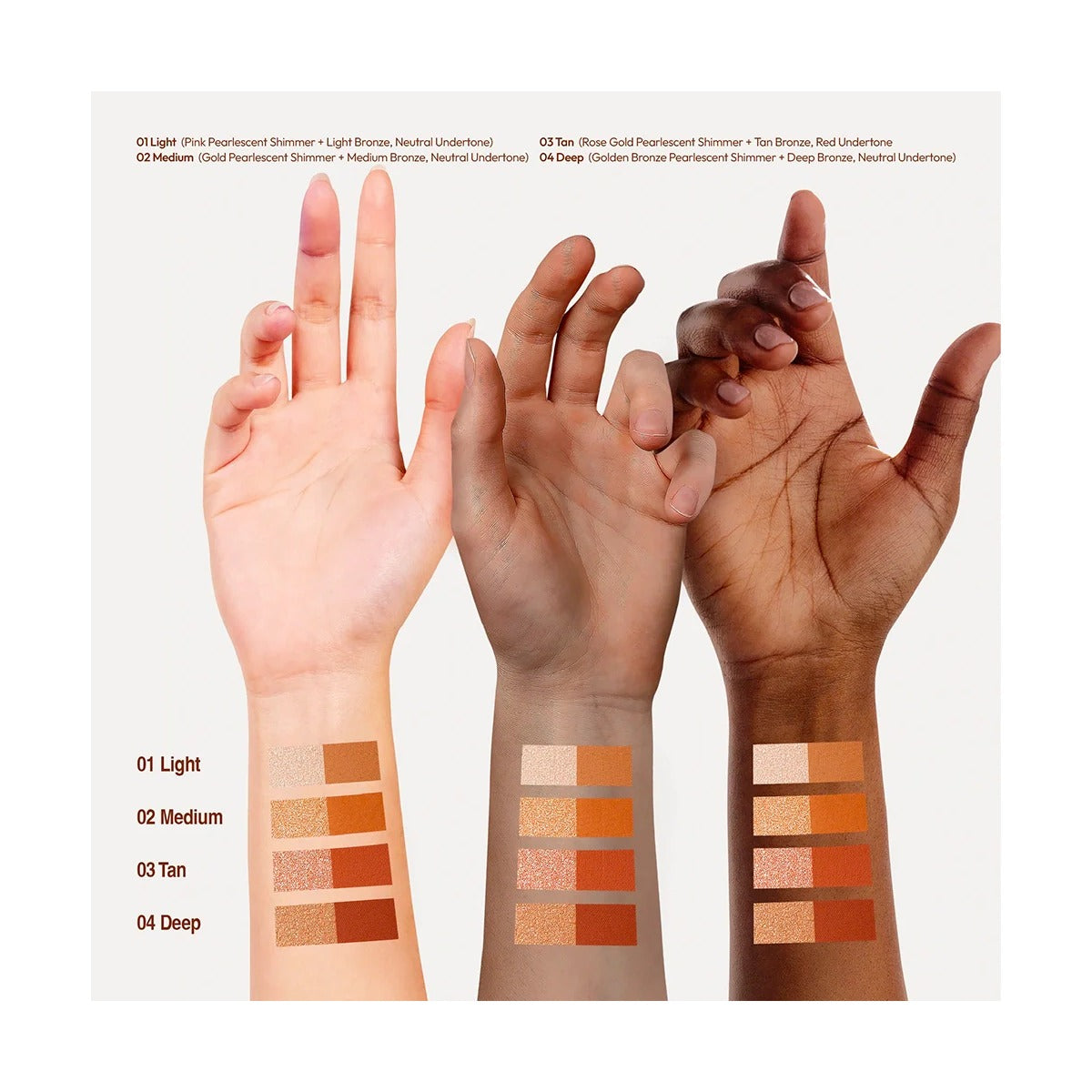 - RDH02: Medium (gold pearlescent shimmer + medium bronze, neutral undertone)