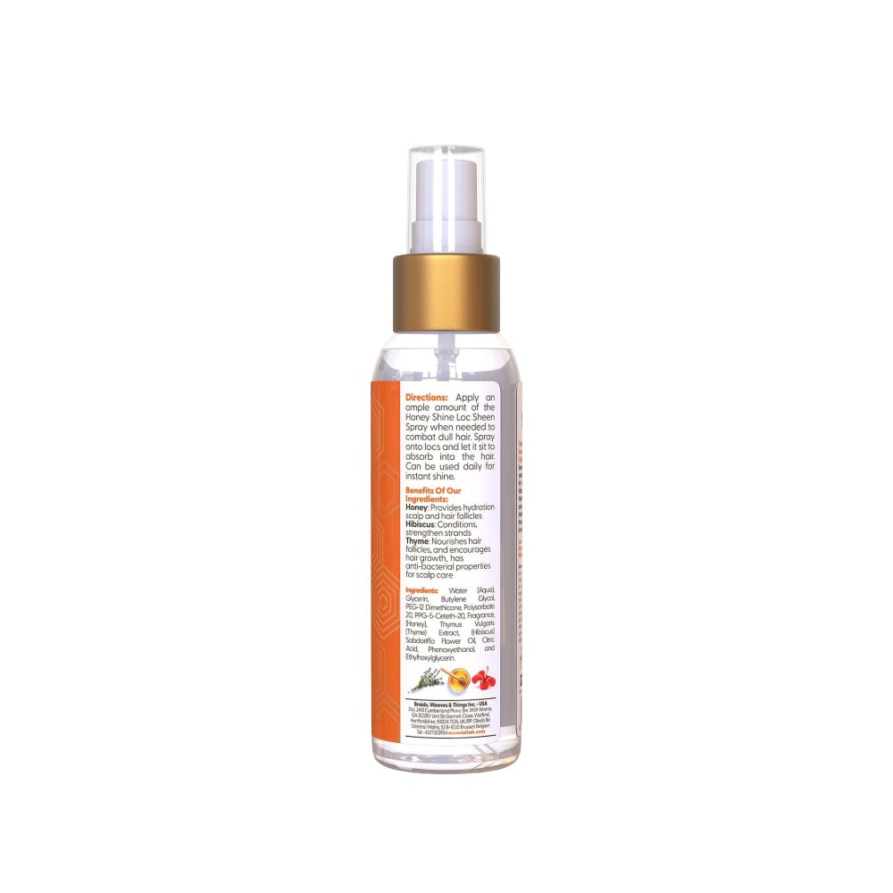 - Apply an ample amount of the Honey Shine Loc Sheen Spray when needed to combat dull hair.