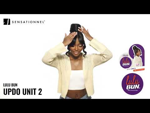 SENSATIONNEL Lulu Bun Updo wig packaging showing model wearing high bun with HD lace parting