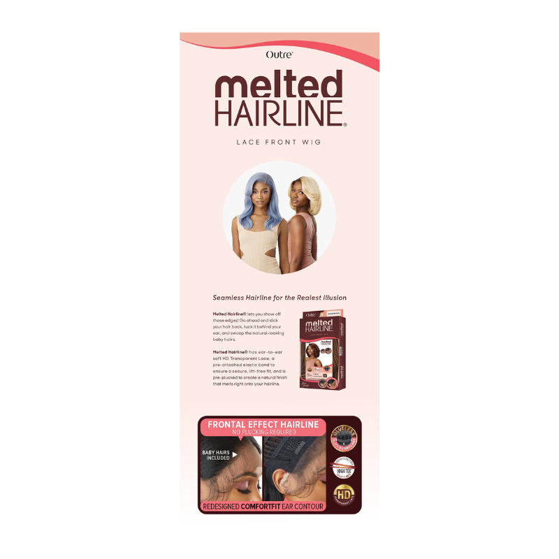 Melted Hairline has ear-to-ear soft HD Transparent Lace, a pre-attached elastic band to ensure a secure, lift-free fit, and is pre-plucked to create a natural finish that melts right onto your hairline.