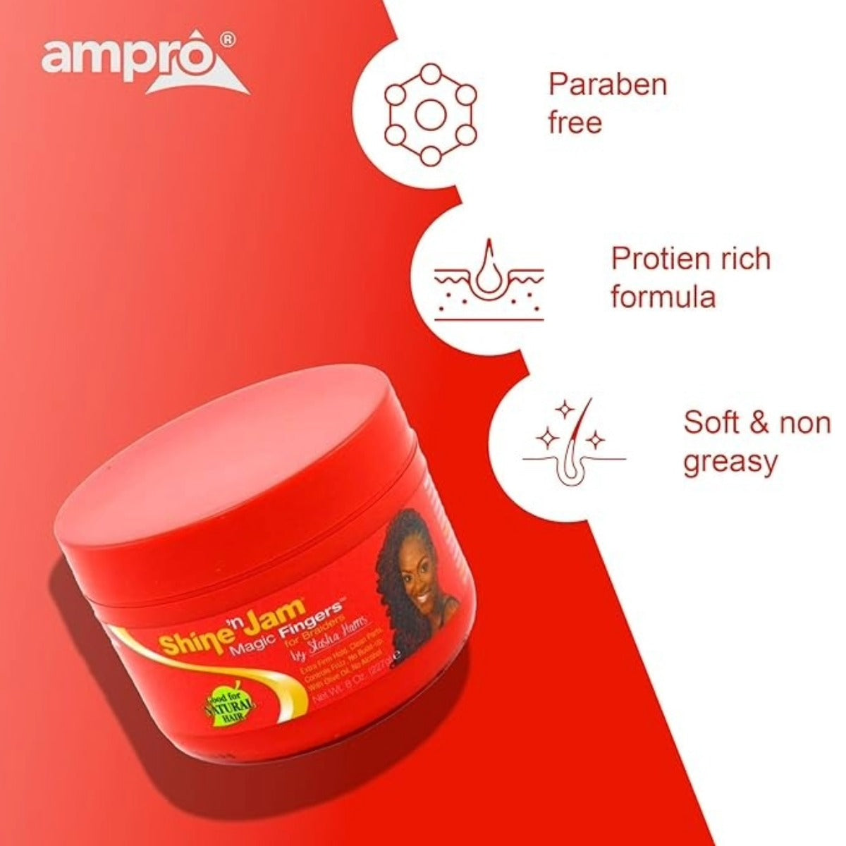 A lightweight braiding gel, Shine ’N Jam Magic Fingers For Braiders is formulated to help stylists and wearers create clean, precise edges and parts with a firm yet non-greasy hold. It works across varied hair textures and is especially useful during braiding, weaving, locs, or twist styles—helping to maintain smooth lines and a polished finish. Fortified with moisturizing oils and proteins, it aims to prevent flaking or dryness often associated with strong hold products and offers a shine without residual greasiness.