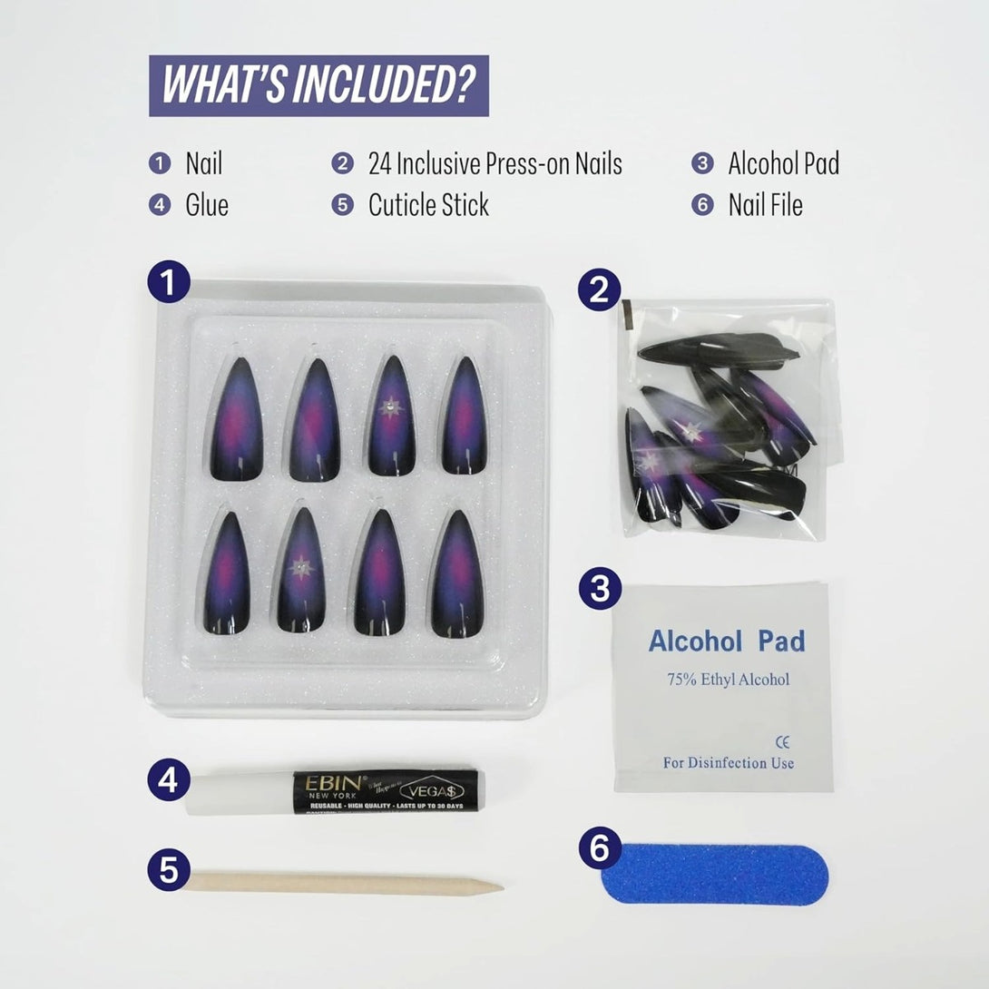 • Premium Quality: Crafted from top-tier materials, What Happens In Vegas press-on nails are both safe and durable. The high-quality materials ensure that your nails maintain their stunning appearance throughout wear. Includes 24 nails, glue, nail file, prep pad, and a cuticle stick. Easy and quick application and removal without the hassle